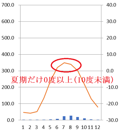 夏期だけ0度以上になる気候
